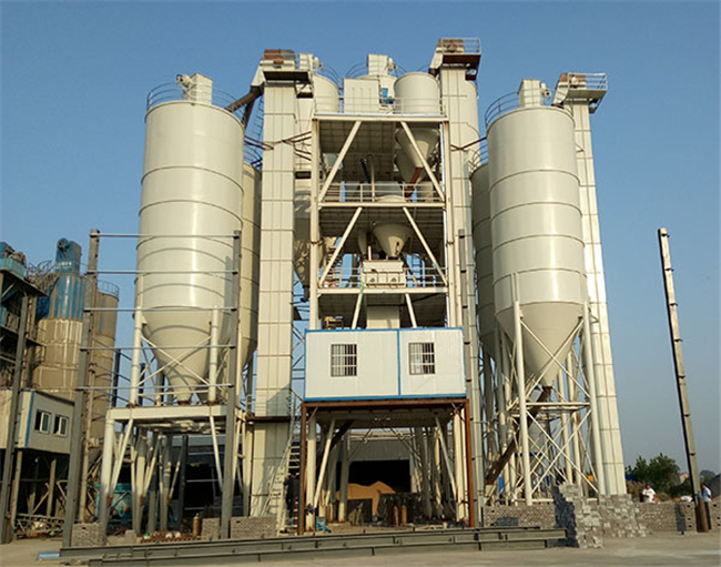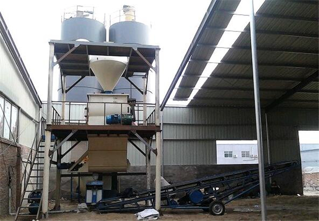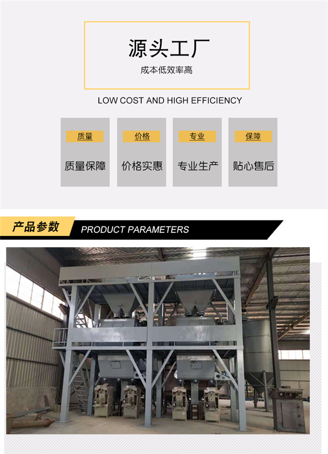 主要由提升輸送系統、計量配料系統、混合系統、儲料系統、包裝系統、除塵系統、控制系統、鋼架平臺等組成。