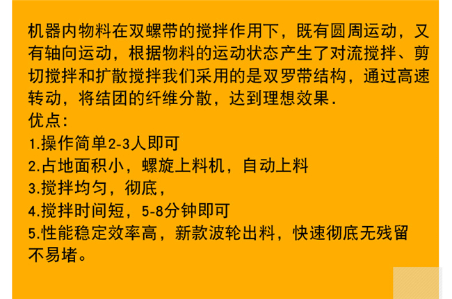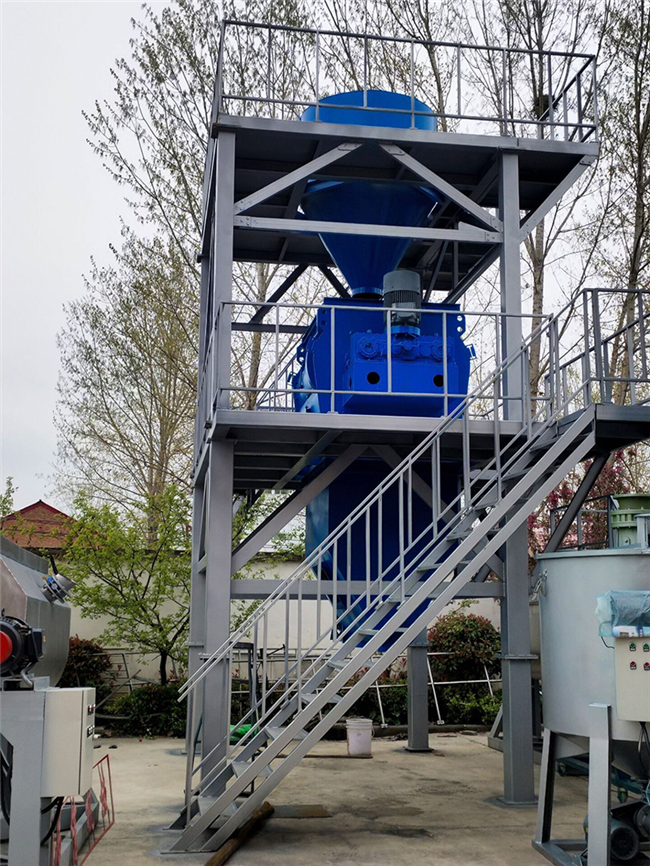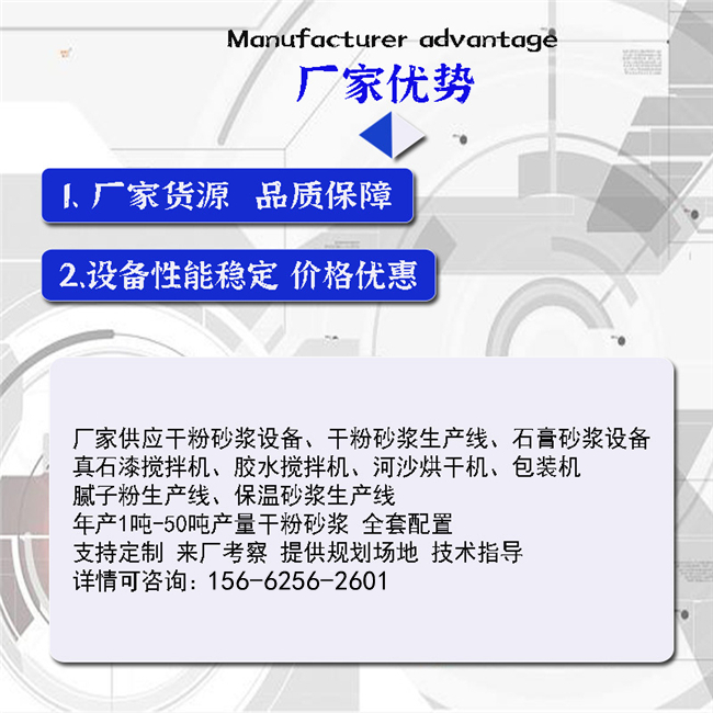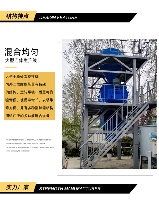 混合系統:可配套雙軸無重力漿葉式混合機、犁刀混合機混合機,具有混合速度快、混合精度高等優點,該機可攪拌1:10,00甚至更高的極限混合比。在攪拌漿葉合理的推動速度下,使聚苯顆粒、膠凝材料和化學添加劑等比重、粒度差異較大的物料,處于瞬間失重狀態,在拌筒內形成全方位對流、擴散和相互剪切,快速溫和地達到混合均勻的效果,不會產生偏析和破壞物料的原始狀態,確保了砂漿的保溫系數不會因保溫原料的形狀破壞而降低,確保了產品的保溫效果。
